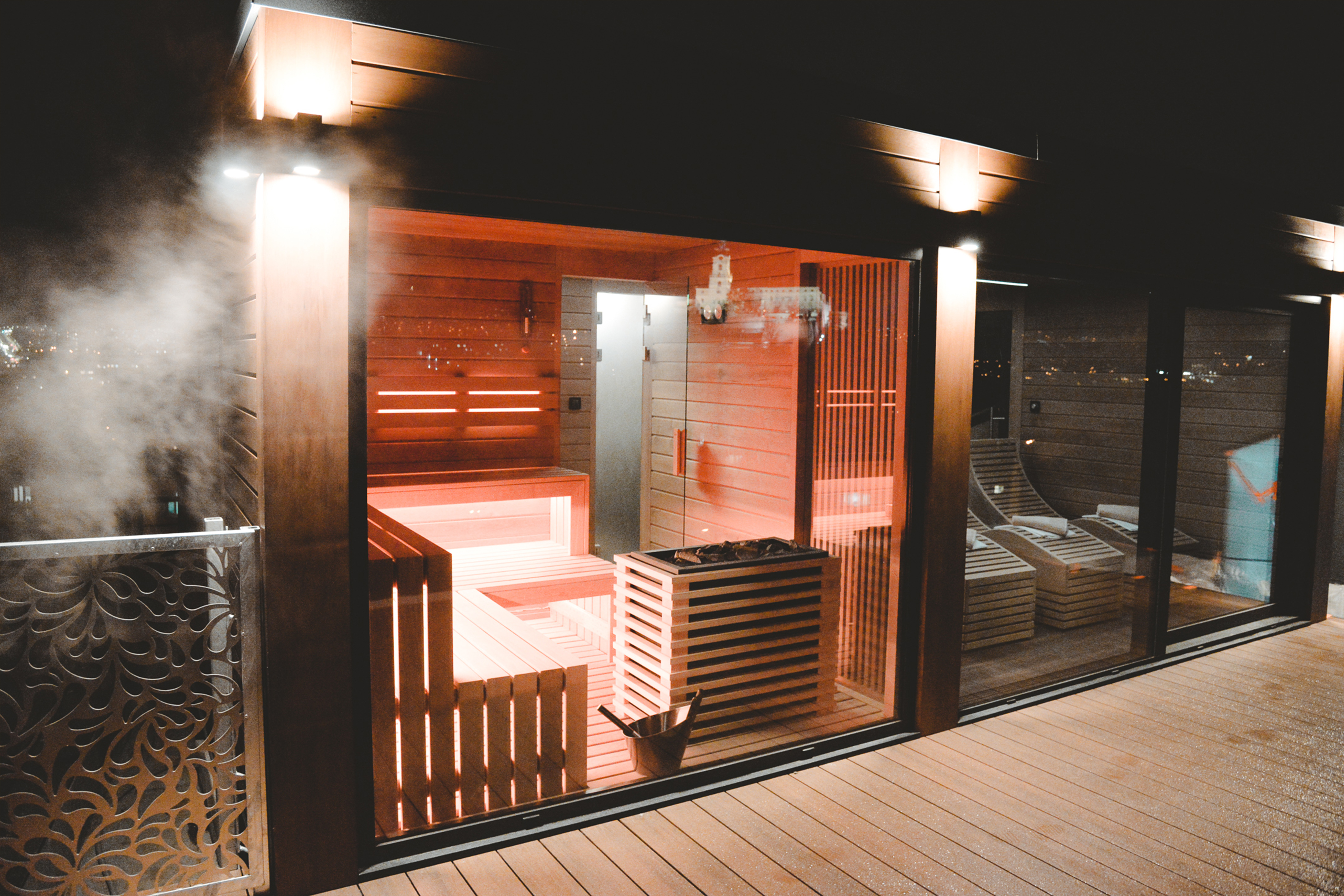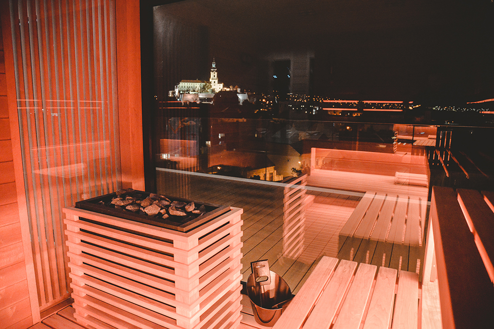 Rooftop Spa ponúka panoramatický výhľad na Nitriansky hrad a mesto priamo z vírivky, fínskej sauny, infra sauny a ochladzovacej kaďe, čo z nej robí jedinečný wellness na streche hotela v Nitre. Wellness je vhodný pre páry, ale aj pre jednotlivcov, ktorí si chcú dopriať relax v príjemnom prostredí s výhľadom.