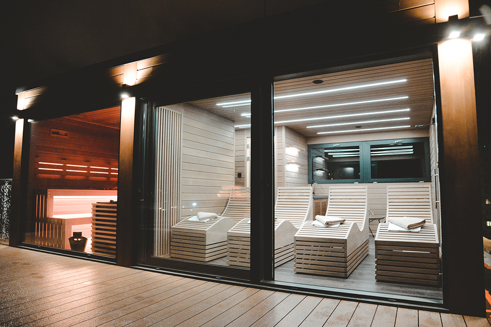 - Luxusná wellness atmosféra s fínsou a infra saunou, vírivkou a ochladzovacou kaďou.